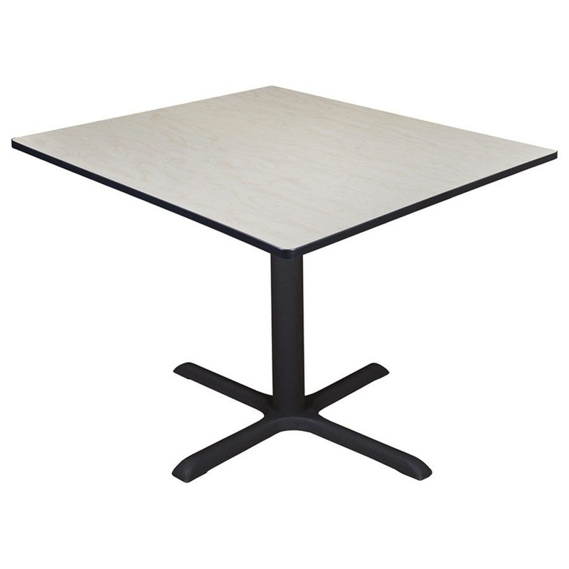 Whether you’re planning a lounge, cafe, library, breakroom or restaurant, let the Cain Collection take you there. These versatile tables are at home in stylish Cafe or coffee shop settings as well as lunch rooms. This 48-inch square table is constructed of a thermal fused melamine Maple laminate tabletop that is 1-inch thick and finished with a black T-Mold edge band. Rounded corners make the table safer for everyone. Laminates are scratch, stain and scald resistant and wipe clean easily. The stylish X-Base is constructed of a tubular steel post and solid steel X-Base. Hidden adjustable glides keep the tabletop level and are easy to adjust. The Cain Collection is backed by a 10-Year Limited Manufacturer’s Warranty.