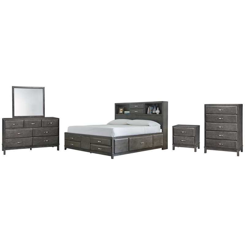 Caitbrook California King Storage Bed with 8 Storage Drawers with Mirrored Dresser, Chest and Nightstand