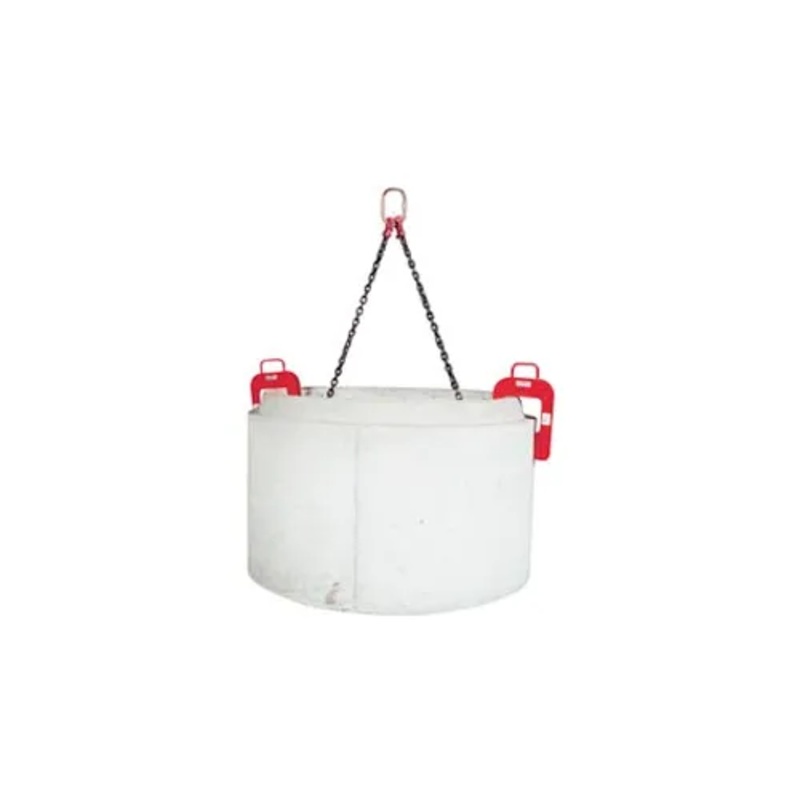This large mouth concrete manhole housing lifting clamp is designed to handle 4" to 6" thick sections without damaging the concrete seat. Lifter works on a variety of housing shapes and chain legs allow for quick positioning to balance the load. Concrete h