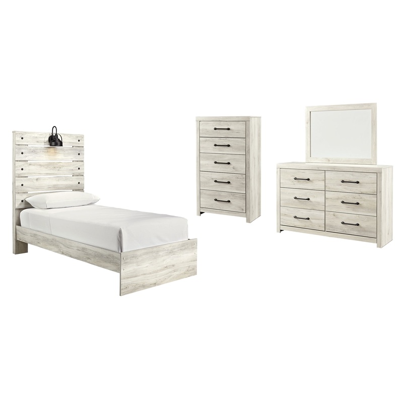 Cambeck Twin Panel Bed with Mirrored Dresser and Chest