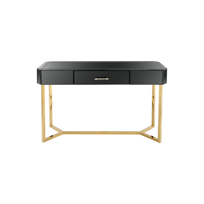 Camden Isle Sonya Console Table Sonya Console Table by Camden Isle The Sonya is perfect for one desiring flair. The black surface adds an element of mystery, while the gold contemporary base supports artistically supports this console in every way. The single drawer design offers just enough storage without compromising the integrity of the design. Bar far, the Sonya is a winner and will make any space come to life.