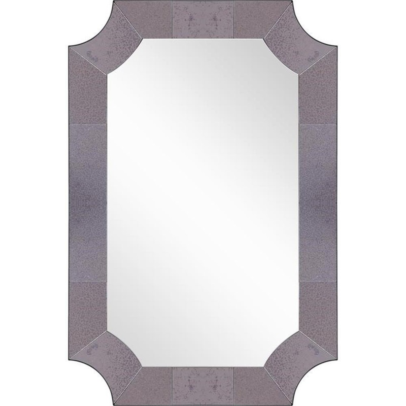 The elegant Templar Mirror features a smooth surface with beveled edges accented by an antiqued mirrored frame. With its curved edges, the mirror adds a style factor to your contemporary or rustic chic dcor. This well-crafted mirror blends artistically with both pastel and bold color pallets. Beveled 24 x 36 mirror has a high quality silver backing. Ready to hang either vertically or horizontally with pre-attached hanging mounts.
