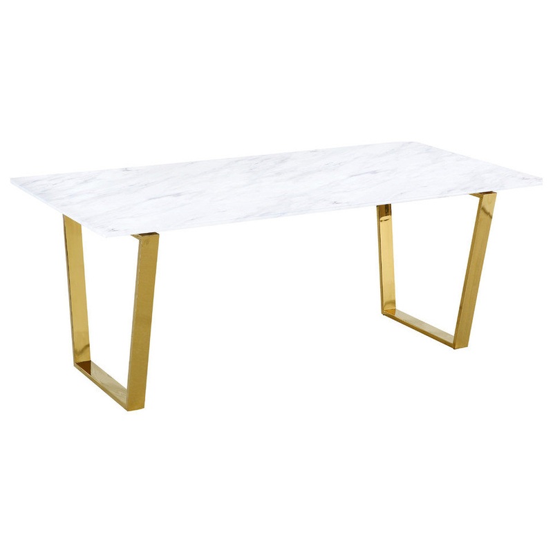 Attract attention to the center of your dining room with Cameron gold stainless steel dining table by Meridian Furniture. Featuring a solid stone top and a stunning rich gold finish stainless steel base, this dining table is durable and stylish, complement
