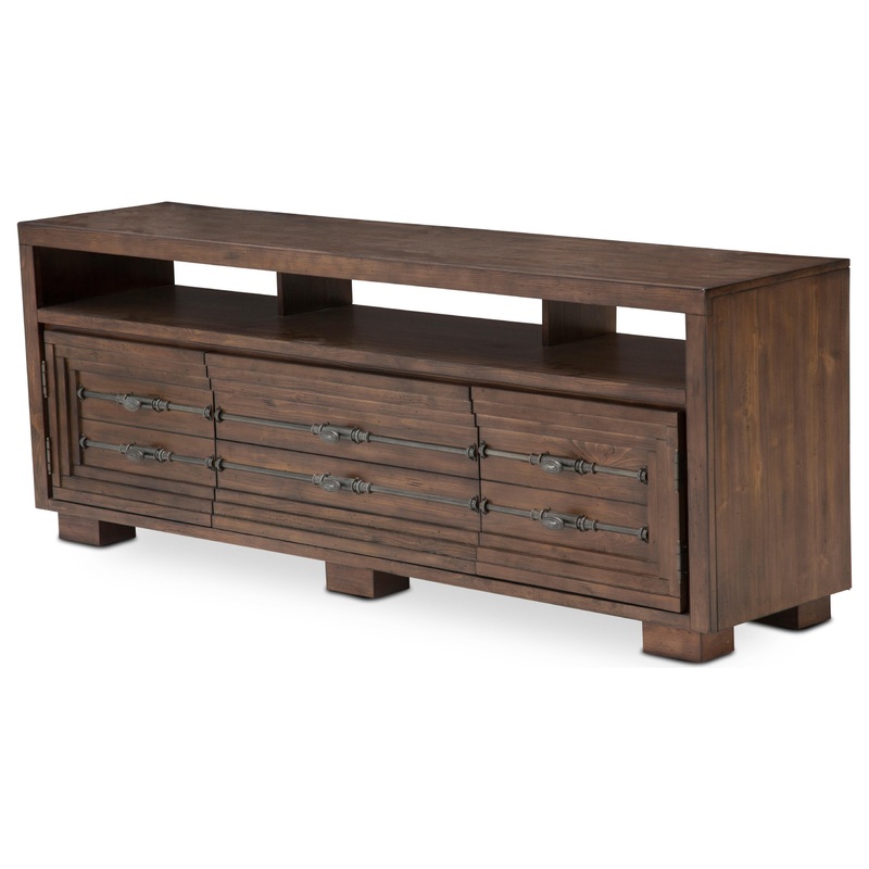 -Three open media shelves provide the perfect spot for your entertainment devices.Whether your dcor is classic or contemporary, its rustic brown finish effortlessly bridges the gap, becoming a versatile and timeless addition to your living space.