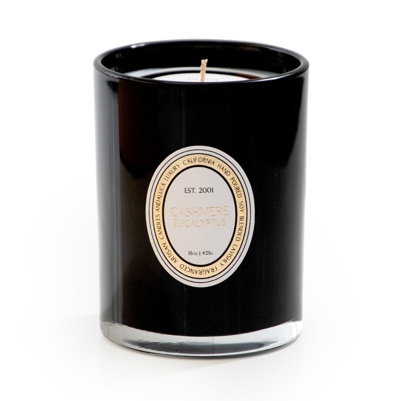 Keywords: Cashmere Eucalyptus 15 oz. Glass Candle, California candle, cashmere eucalyptus fragrance, natural soy blend wax, mandarin peel scent, orchid fragrance, eucalyptus essence, black rose aroma, patchouli blooms scent, cashmere musk notes, oakwood fragrance, cedarwood scent, 15 ounces candle, over 40 hours burn time, home fragrance, relaxing atmosphere