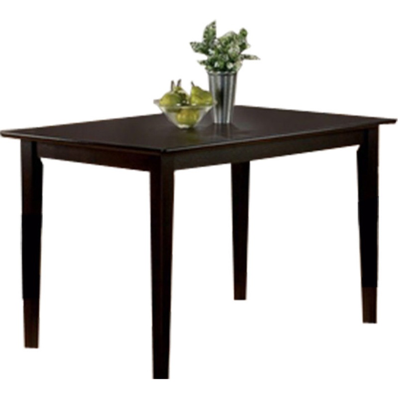 This Casual Rectangular Dining Table in Dark Brown Cappuccino Wood Finish would be a great addition to your home. It has a casual style and a dark cappuccino finish. Features: -Casual Rectangular Dining Table in Dark Brown Cappuccino Wood Finish -TABLE -Ca