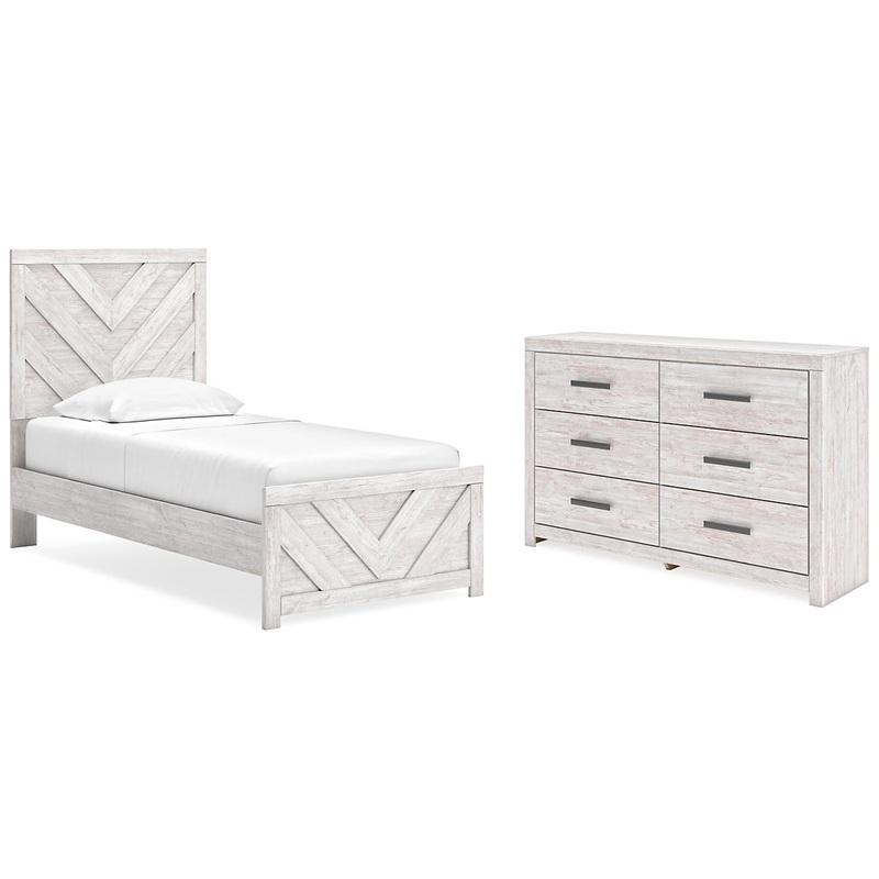 Charmingly designed, this bedroom package embraces the aesthetics of countryside living and repurposes them for modern settings. Its whitewash paint, replicating the wear and tear of time, appeals to your love of vintage character.