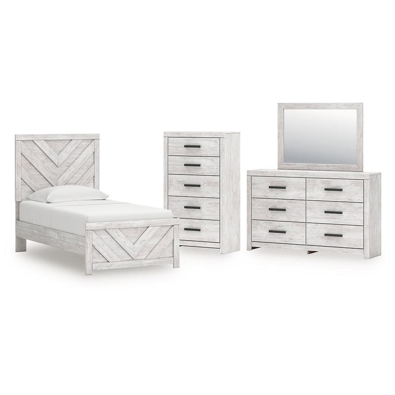 Cayboni Twin Panel Bed with Mirrored Dresser and Chest
