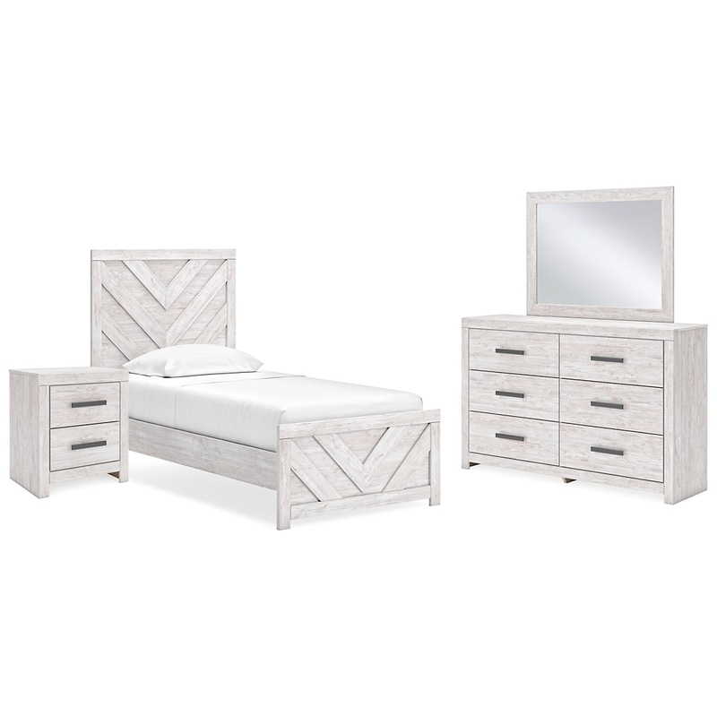 Cayboni Twin Panel Bed with Mirrored Dresser and Nightstand