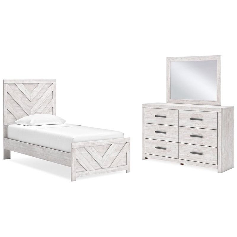 Cayboni Twin Panel Bed with Mirrored Dresser