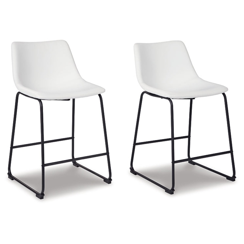 With its distinctive contoured bucket seat and tubular metal base, this set of 2 bar stools serves up a fresh twist on mid-century inspired style. Contrasting white faux leather upholstery adds to the aesthetic. What a timeless look for eat-in kitchens and casually cool dining rooms.
