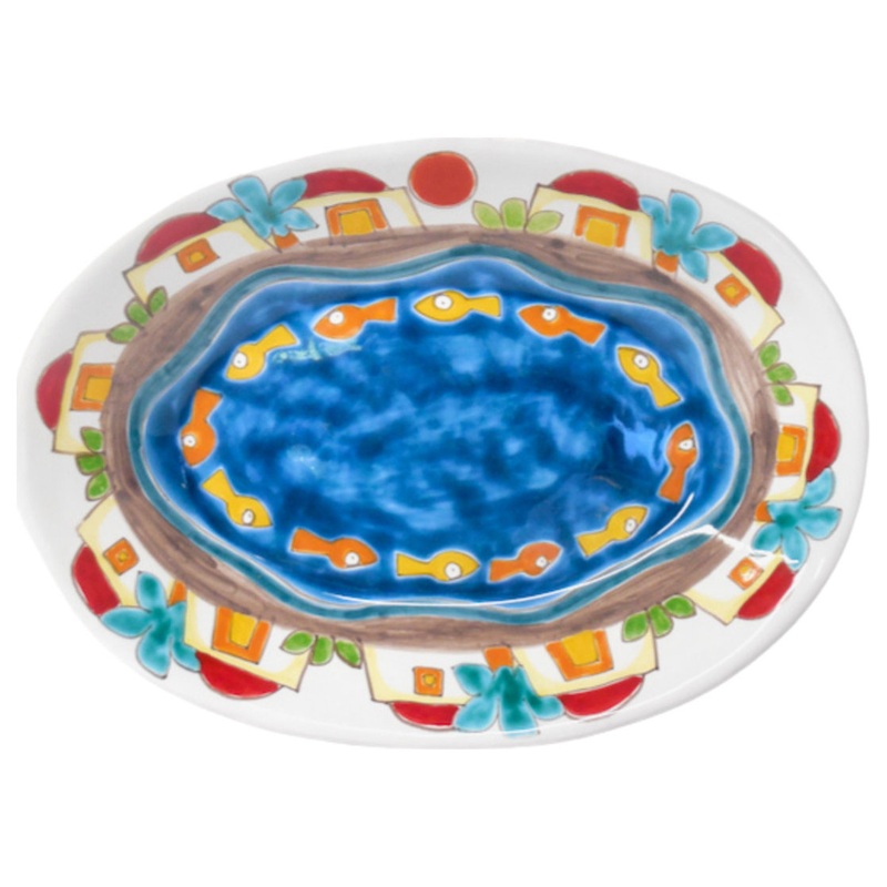 Ceramiche di Sicilia 15X11 Oval Serving/Wall Platter with Fish & Houses – Mediterranean – Decorative Plates – by Bonechi Imports