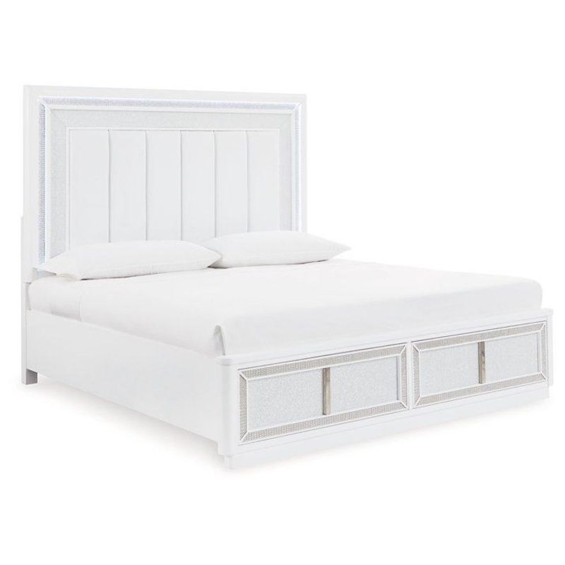 Transform your bedroom with this upholstered storage bed. Its LED lighting, rhinestone framing and faux leather panels exude modern glamour. And the convenient storage footboard offers a practical solution for organizing and accessing belongings. Let your sanctuary shineand never let anyone dull your sparkle.