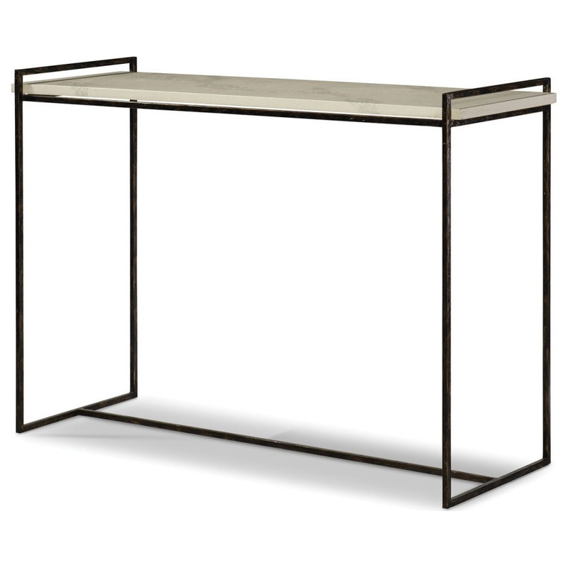 Burnished Steel Charm Console Table with Creme Scagliola Top