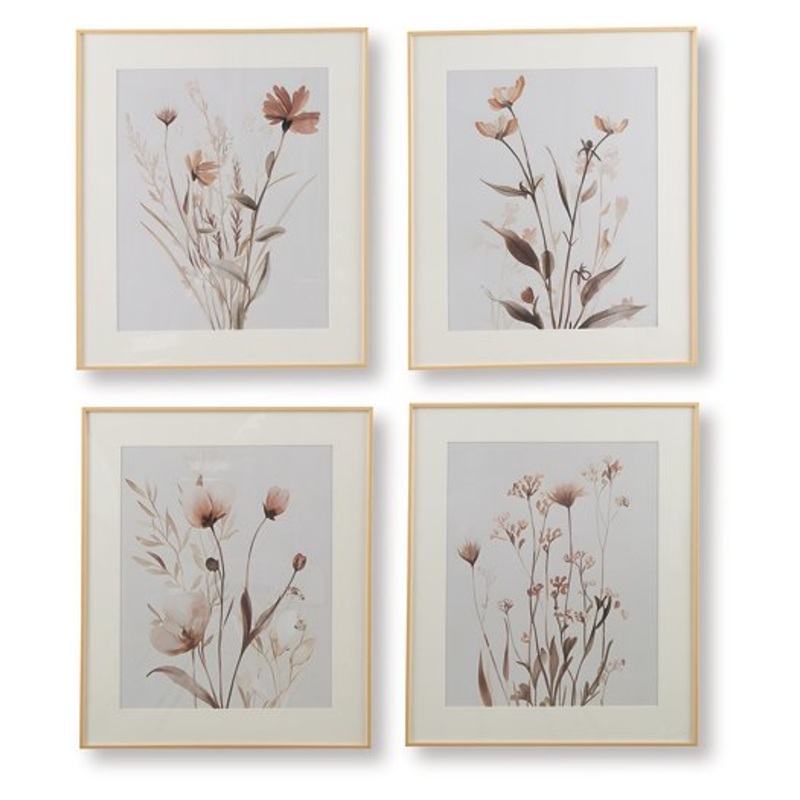 Bask in the beauty of botanical style. This wall art set is well-suited to casual spaces, with each piece featuring a unique floral design in muted beige, gray and blush tones. Hang these framed prints together to make a charming statement.