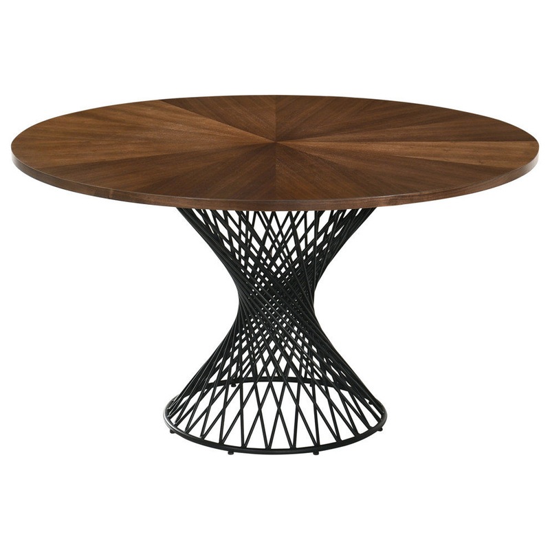 The 54" round Armen Living Cirque dining table features an intricate metal pedestal base. The unique style lends itself to a mid-century modern design theme, but it serves as a universal piece that can easily be paired with any style dining chairs. Seat up