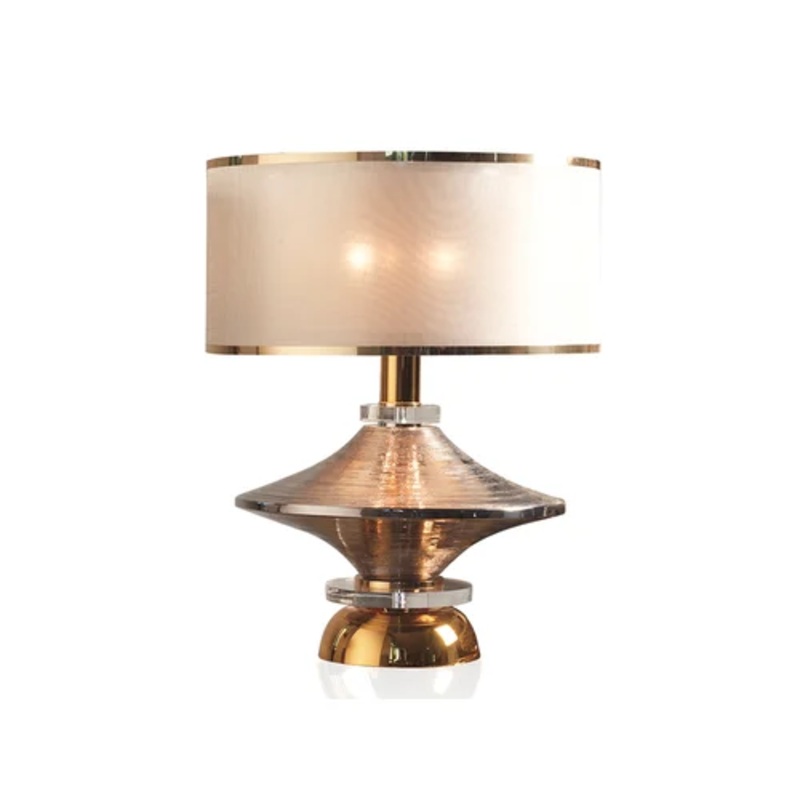 CL2104 Table LampThe designer Simone Granchi has designed this lamp for the Italian brand Sigma L2.Lamp composed of engraved and platinum plated majolica, details in nickel and gold brass and plexiglass. The lampshade is double; outside in lam gold fabric,