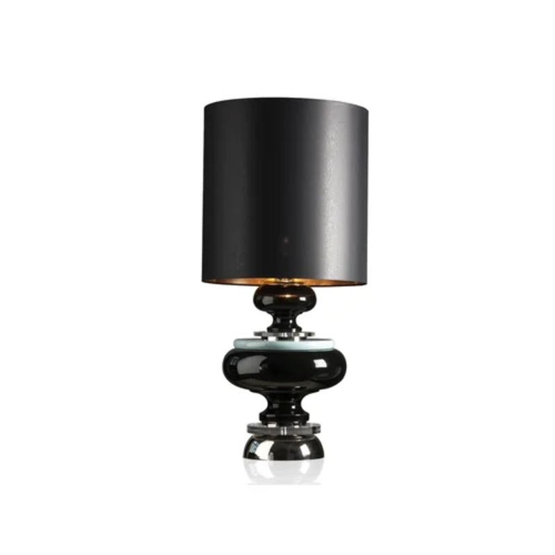 CL2106 Table LampThe designer Simone Granchi has designed this lamp for the Italian brand Sigma L2.Lamp composed of black gray / light blue glazed majolica with details in nickel brass and plexiglass. The lampshade is in black gold chintz interior.Light so