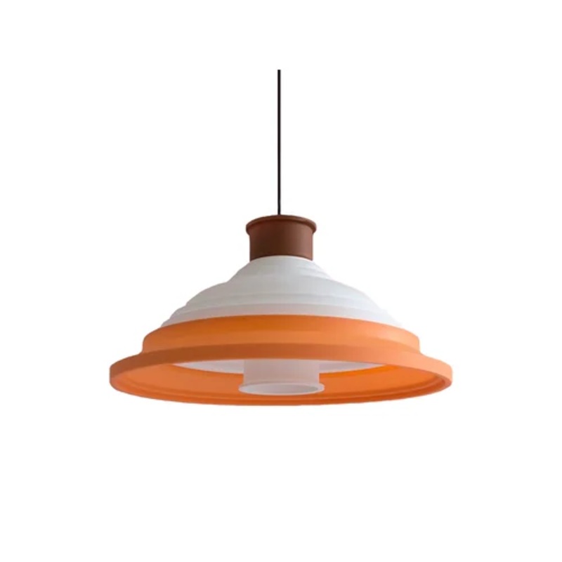 Its refined appearance and the bright colour of its diffuser make this lamp a lighting object capable of giving interiors a cheerful and sparkling touch. Characterised by a large circular orange silicone shade, CL5 is completed by a white cylindrical diffuser. The particular lines that make up this attractive suspension lamp allow the light source to project a direct and wide beam of light, capable of intensely illuminating any environment. Ideal for living rooms, bedrooms, offices or catering establishments, CL2 is sold with a 2.5 metre rope kit included.