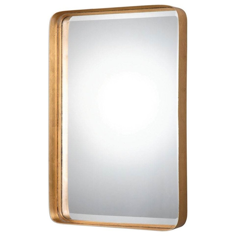 Frame Is Made Of A Thick Metal Strap Finished In Lightly Antiqued Gold Leaf. Mirror Has A Generous 1 1/4" Bevel. May Be Hung Horizontal Or Vertical. Item: Antique Gold MirrorDesign: Thick Metal Strap Finished In A Lightly Antiqued Gold Leaf. Size: 30. 25''
