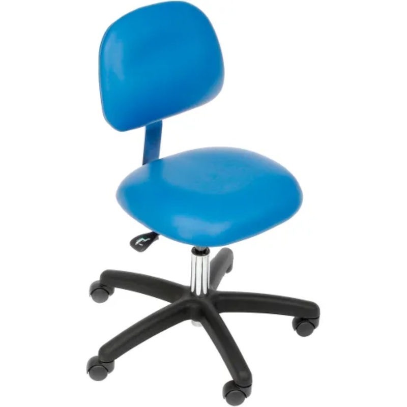 Ergonomically designed production chairs provide hours of comfortable seating. Standard on all seating: 18″ sq. seat, 16″W x 13″H back with 2-1/2″ thick foam padding, adjustable seat depth and reinforced black nylon bases with dual-wheel casters. Pneumatic height adjustment from 17-1/2 to 22-1/2″ for chairs. Conductive Clean Room models meet Class 100, federal standard 209E. They have a three level filtration system, completely sealed cushions and chrome plated metal parts. Easy assembly.