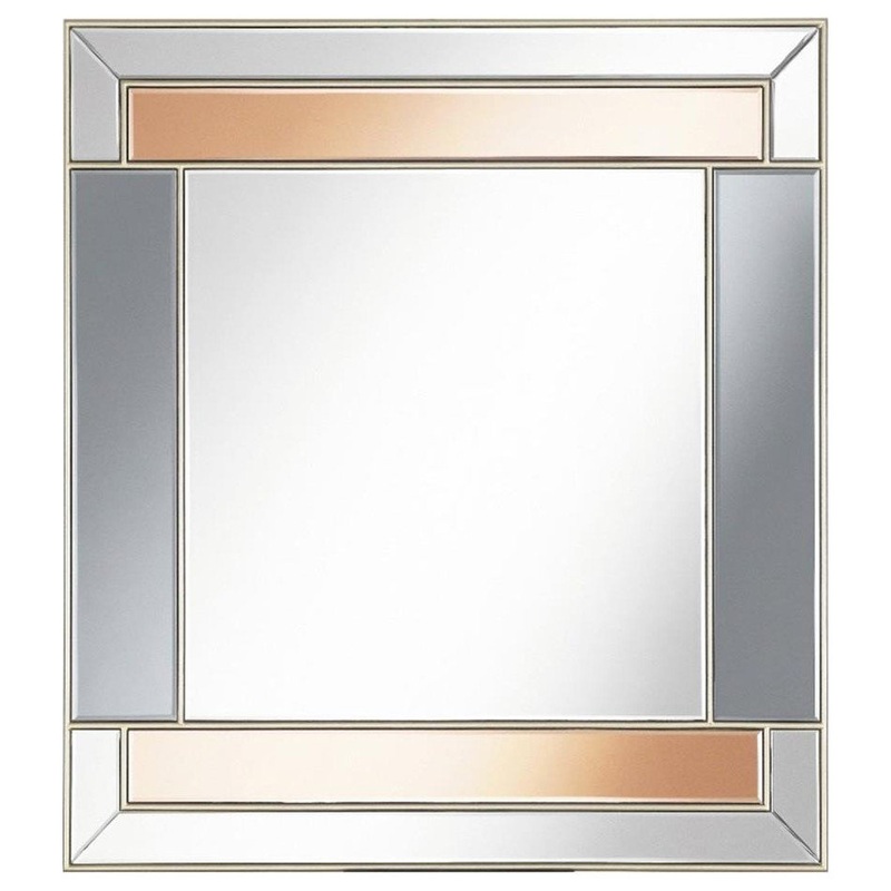 With a two-tone design, this rectangular wall mirror is sure to be noticed. Lending an Art Deco flair exhibited in staggered lines and vintage-inspired warm accents, this glamorous yet contemporary wall mirror offers a dramatic touch. Stainless steel trim