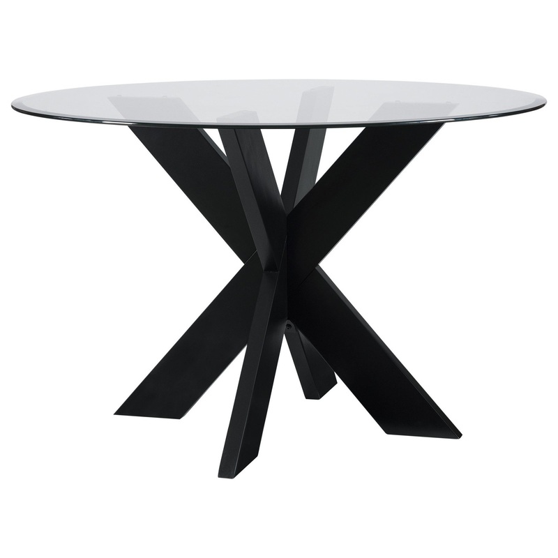 -Form and function are beautifully combined in this modern interpretation of midcentury design -Beveled 10mm glass top for glass top is tempered for extra strength and durability -Rich black finish will pair with a variety of dining chairs and decor styles