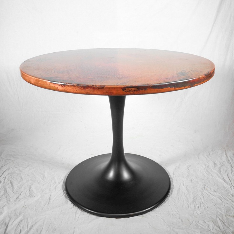 A charming addition to your home dcor, the copper Tulip dining table is comprised of a solid cast-iron base soothed in a deep, black finish that melds sensibly with the hand-hammered copper tabletop. While elemental, airy patterns and patinas grace the surface, this semi-modern style blends anywhere and isbuilt to last for generations to come.