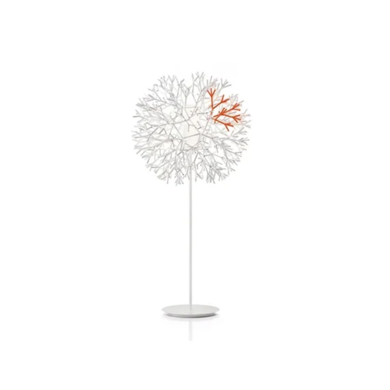 Inspired by delicate sea corals, this unique design creation transforms each indoor space into a refined contemporary environment. Characterized by a circular base, at the center of which is a long, slender tubular stem, Coral is complemented by an original intricate structure made of matte painted metal with an injection molded element. The light source, positioned inside a cylindrical glass diffuser, allows this fascinating floor lamp to create relaxing and sophisticated lighting in rooms. Ideal in a professional studio, living room or bedroom, Coral brings elegance and style to any type of interior.