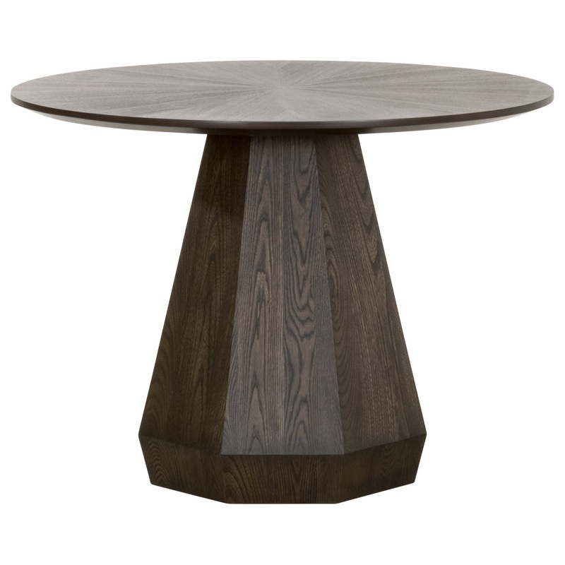 This charming round dining table is perfect for smaller spaces. Measuring 42″ in diameter, this beautiful ash wood table is an ideal size for breakfast nooks, petite dining areas, and apartment living. It features an octagon-shaped pedestal base that slightly tapers at the top and the bottom. Natural wood grain and angular lines add dimension to this eye-catching base as well. The tabletop has a subtle starburst pattern that lends an elegant and subdued design, which nicely offsets the more dramatic base. Comfortably seats 4 people.