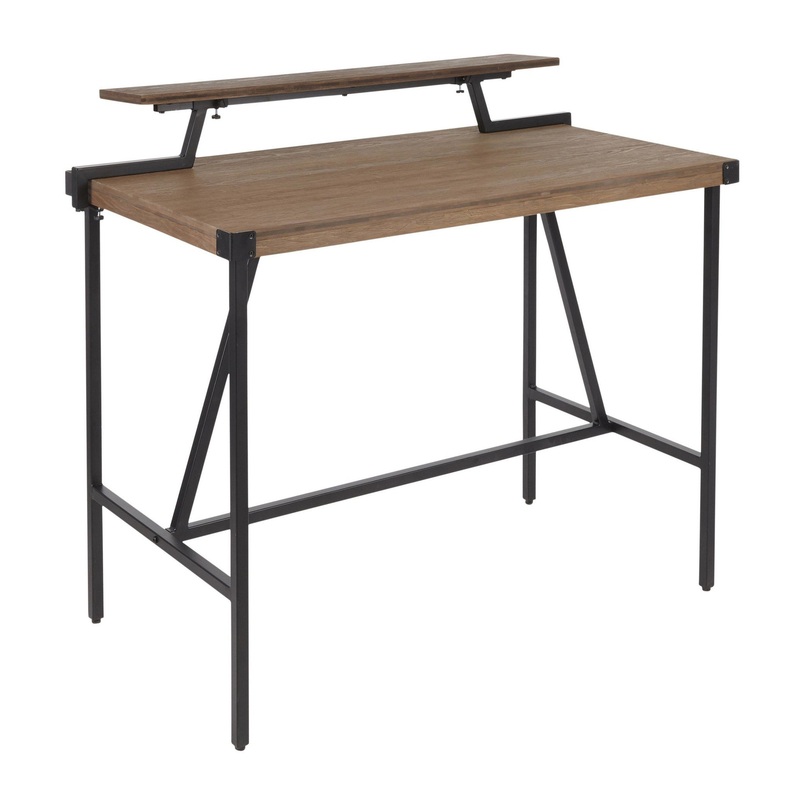 -The industrial design of this Counter Table is sure to make a statement in your home -With a unique metal geometrical frame, a brown wood-pressed grain bamboo top, and a unique removable shelf, your dining area has never looked so good -Black metal basePr