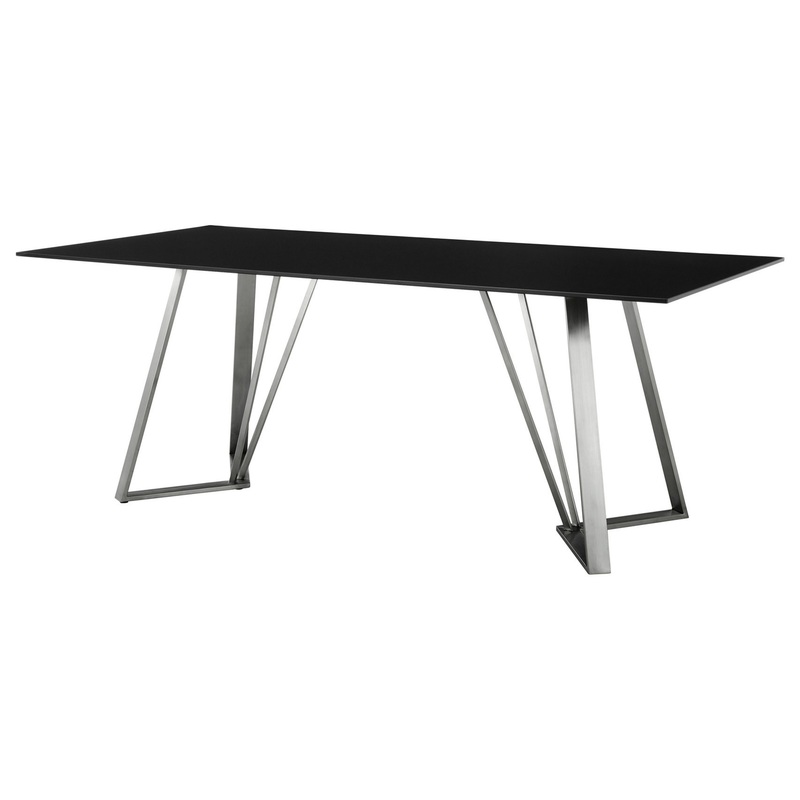 The Cressida Glass Top Dining Table from Armen Living is a contemporary dining table that will refine your kitchen and dining area. It features a strong and striking stainless steel 4-legged base, giving it sleek and stunning visual appeal. The rectangular black tempered-glass top displays an alluring and inviting look, as well as possess traits such as durability – lasting years for you and your home! Modern in style, this table is perfect for relaxing with a glass of wine after work or enjoying entertaining a large group of guests. Pair it with any of the dining chairs from any of our collections at Armen Living.