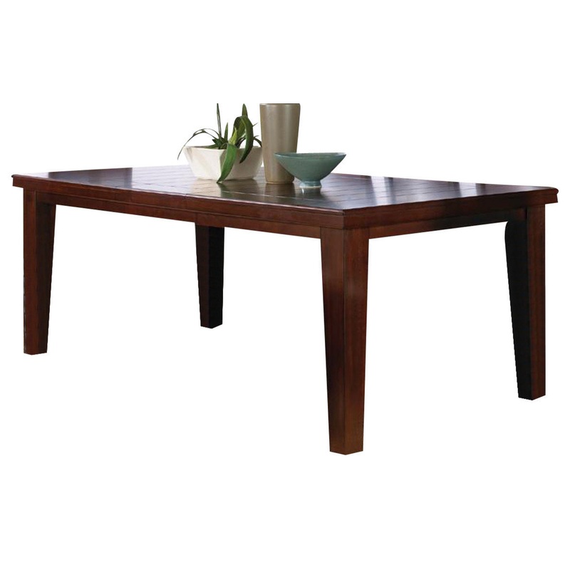 A plank top adds rustic style to this contemporary style dining table that is sophisticated enough for guests or daily use with your family. The rectangular table extends from 64 inches in length to 82 inches long with 18-inch leaf. The versatile leaf adds