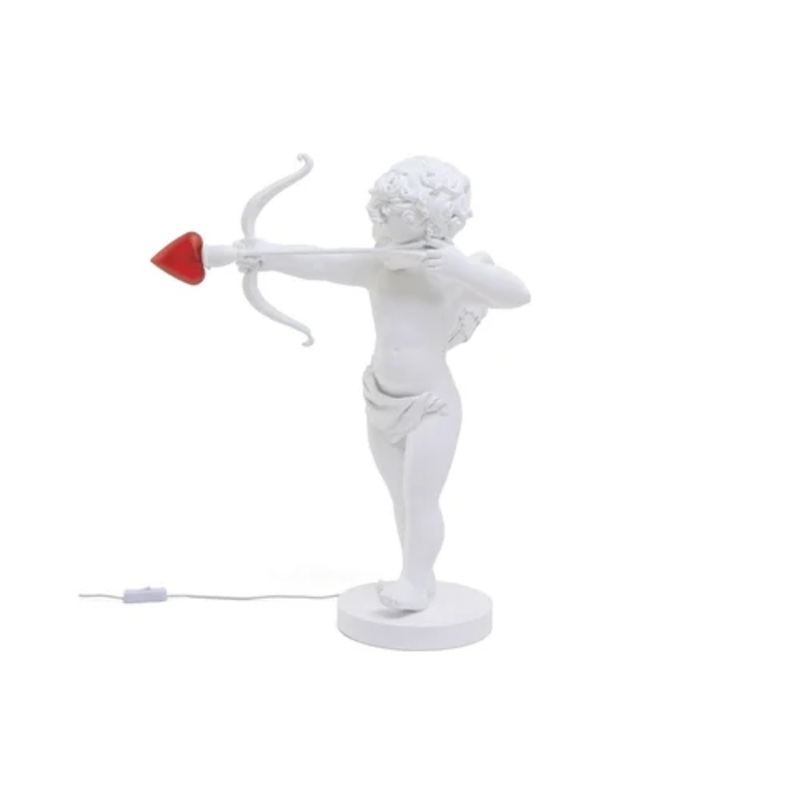Cupid captures the essence of brightness, turning it into a fascinating play of reflections, capable of giving any interior a cheerful look and a unique and sophisticated atmosphere. The original structure made entirely of resin and depicting the God of love is complemented by the presence of a heart-shaped diffuser. The LED light source available with both red and white bulb, makes an ideal lighting for every need, adapting perfectly in any type of environment. Present in a living room, entrance, bar or restaurant, Cupid is table lamp capable of giving in the spaces a refined and original style, perfectly representing the concept of the Seletti brand in the proposal of its beautiful lamps.