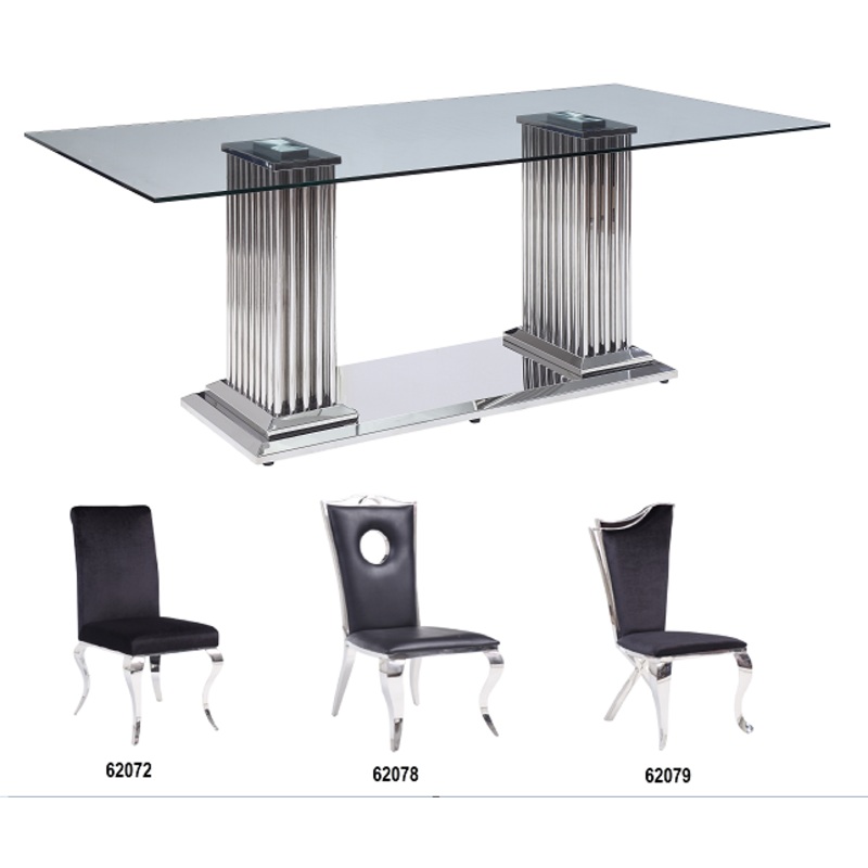 ACME Cyrene Dining Table w/Double Pedestal, Stainless Steel & Clear Glass (1Set/3Ctn), 39"W x 79"L, 12mm Clear Tempered Glass, 258lbs. Add a modern touch to your dining room with the Cyrene dining room collection. With a pair of stunning mirrored pillars s