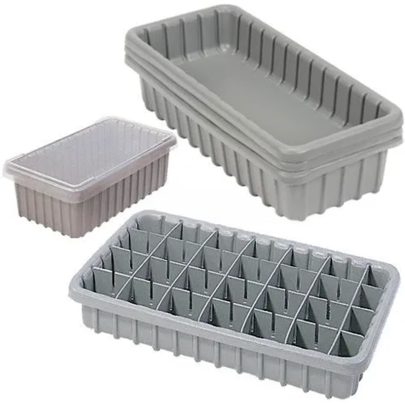 Lids are clear plastic for quick identification of contents and are sold separately.Dividers slide into box slots every 1-1/4″ widthwise and lengthwise. Dividers and Lids sold separately.