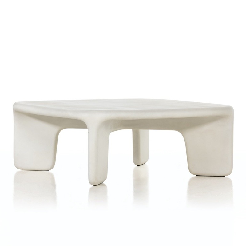 Adobe vibes. Made entirely from white-finished cast concrete, soft, chunky proportions lend a look of depth to this voluminous, uniquely sculpted coffee table.