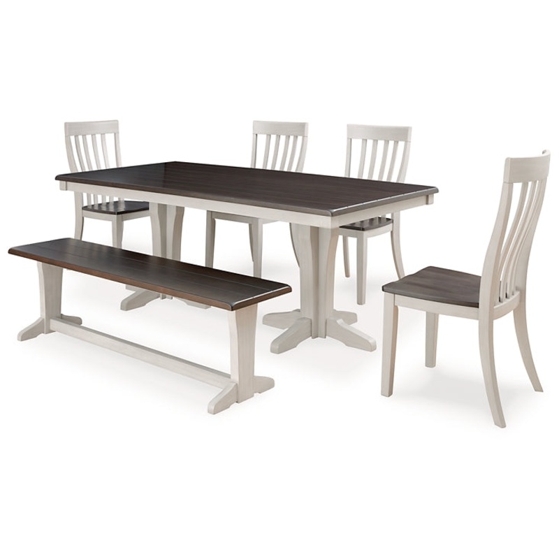 Make a farmhouse-inspired statement with this dining package. Its clean two-tone finish brings the charm of the countryside to your dining room. A versatile set, it adds a casually comfortable vibe to a variety of spaces.