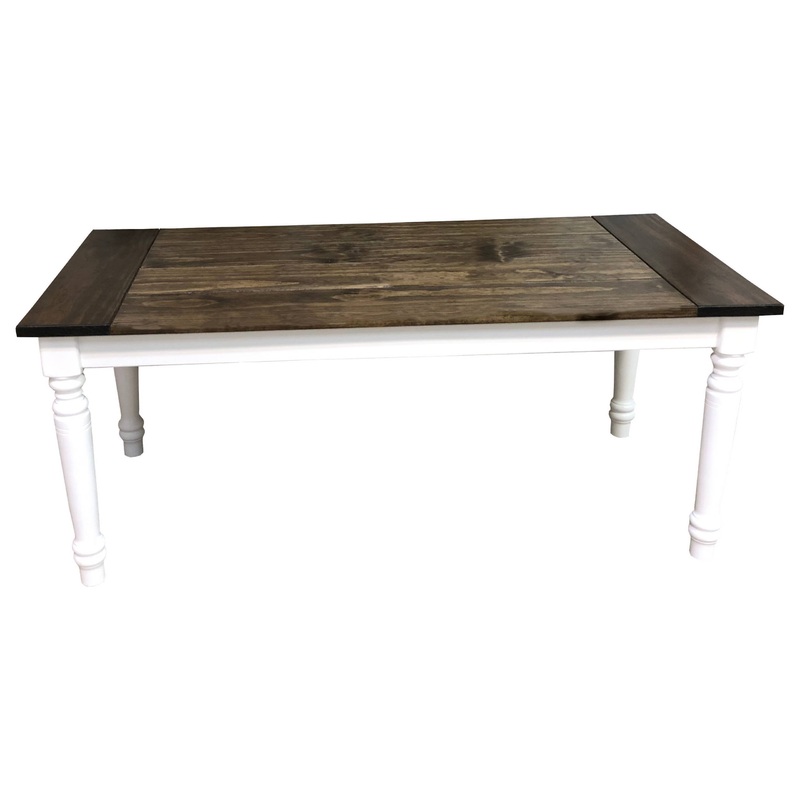 The Dark Walnut and White English Farmhouse Table has a Dark Walnut top and a White Base. This Table is distinguished by its unique ornamentally Thick Turned Style Legs. The table is made by hand to look great and stand up to the pressures of time. The satin polyurethane finish is durable and easy to clean. The simple rustic design is perfect for family gatherings, It’s not just a table, It’s something you can hand down.