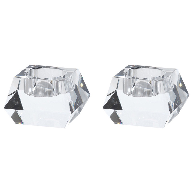 Light up the room with contemporary style with this tealight candle holder set, featuring a sleek faceted design we can't help but adore. -Set of 2 candle holders -Elegant lighting choice in contemporary style -Clear crystal glass -Holds a standard tealigh