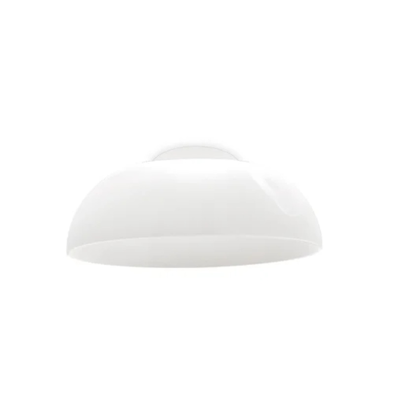When turned off, the Dem lamp is a large transparent dome. Thanks to the exclusive OptiLight technology, when switched on, the lower edge and the thousands of laser micro-engravings on the surface diffuse a soft and homogeneous illumination. This is generated by an invisible LED source placed in the ring of the large upper hole which, as in the ancient Pantheon, is the source of light. Diffuser in transparent laser-engraved PMMA with OptiLight technology and heat-blown. White painted aluminum ring with dimmable topLED source with controlled emission and high visual comfort.