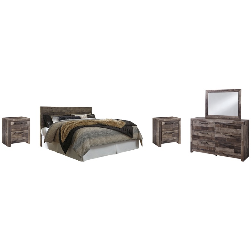 Derekson King Panel Headboard Bed with Mirrored Dresser and 2 Nightstands
