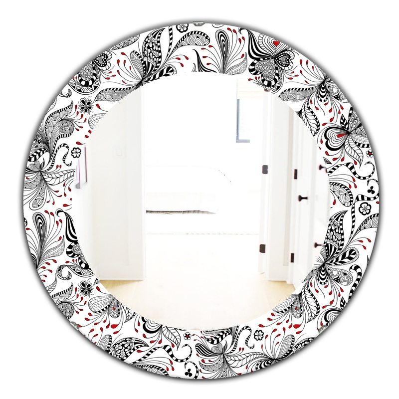 Designart Black And Red Floral Bohemian And Frameless Oval Or Round Wall Mirror, 32×32 – Contemporary – Wall Mirrors – by Design Art USA