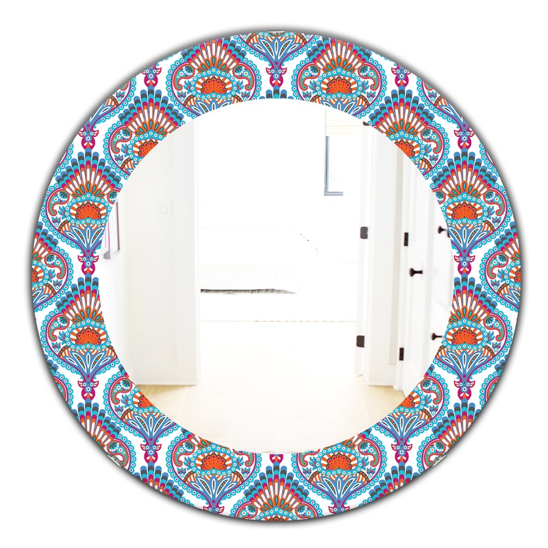 Designart Damask Pattern Bohemian Eclectic Frameless Oval Or Round Wall Mirror, 32×32 – Mediterranean – Wall Mirrors – by Design Art USA