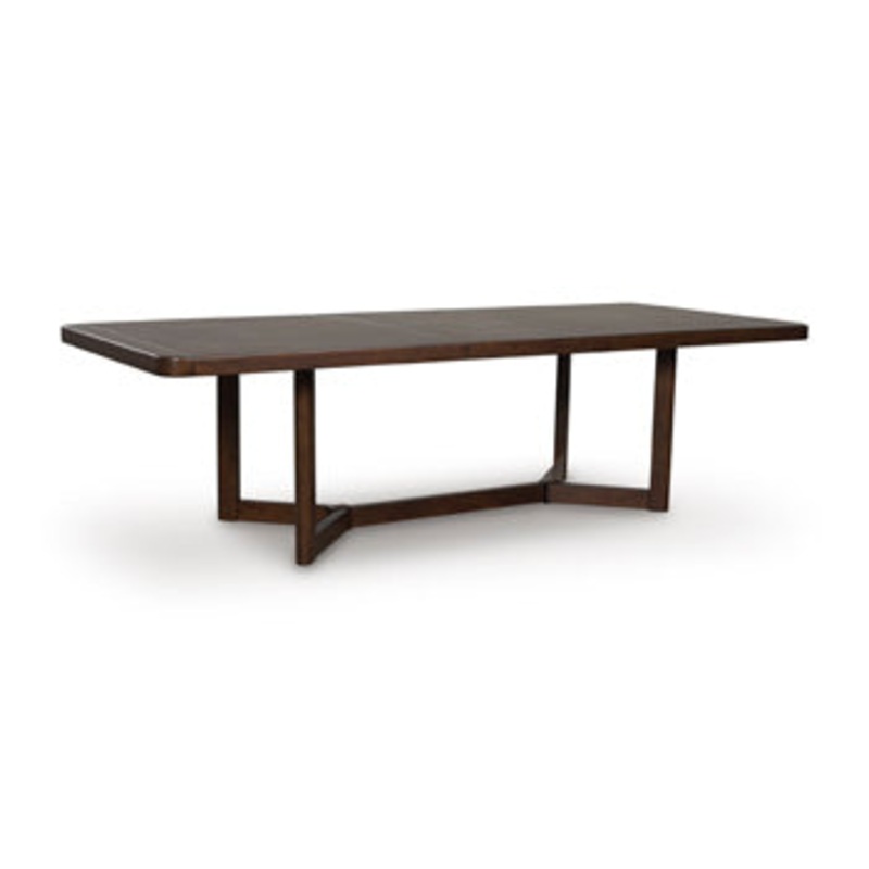 Casual contemporary styling with a decidedly modern vibe. This dining extension table dresses your dining spot in on-trend elegance with its rich warm brown finish. A softly rounded top frame and a fashionable double wishbone base beckon everyone to gather around. Now theres a simply stunning show of great taste.