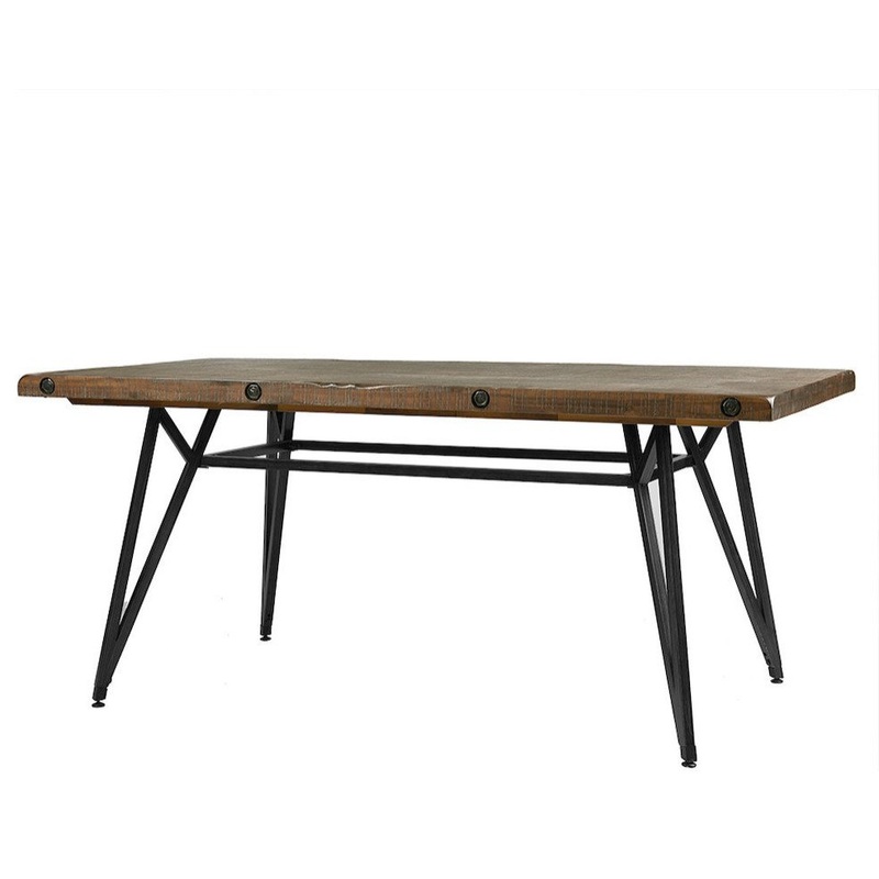 The INK+IVY Trestle Dining Table brings a ruggedly modern style to your kitchen. Heavy planks of reclaimed distressed wood are mounted on a metal frame, giving this dining room table a hearty industrial look. The solid amber wood creates a warm and inviting appeal, while the gunmetal finished legs provide a strong and sturdy base. Perfect to gather around, this modern dining table complements any rustic or modern industrial dcor. Assembly is required.