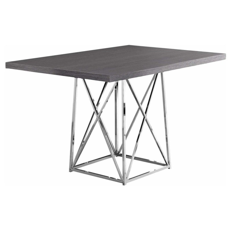 Create a modern industrial minimalist look to your dining space or kitchen area with this on-trend dining table. The rectangular top is finished in a stylish grey, while the sleek track chrome metal legs with an x base design elevate the look to a whole new level. Ideal for small spaces, eat in kitchens or lofts this dining and task table will continue to be in style for years to come, and can be paired with a variety of modern/contemporary chair options. Chairs sold separately.