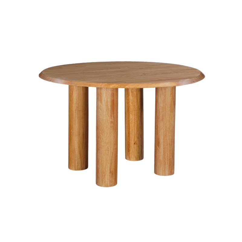 Infuse your dining space with warmth and timeless beauty with this 48-Inch Round Dining Table. Crafted from natural brown mango wood, this table boasts a smooth, round top supported by four sturdy, thick pillar legs, exuding a sense of rustic elegance and strength. Perfect for intimate dinners or heartfelt conversations, its inviting shape encourages everyone to gather close, making each meal a cherished occasion. Let this table be the heart of your home, where bonds are strengthened, laughter is shared, and memories are lovingly crafted.