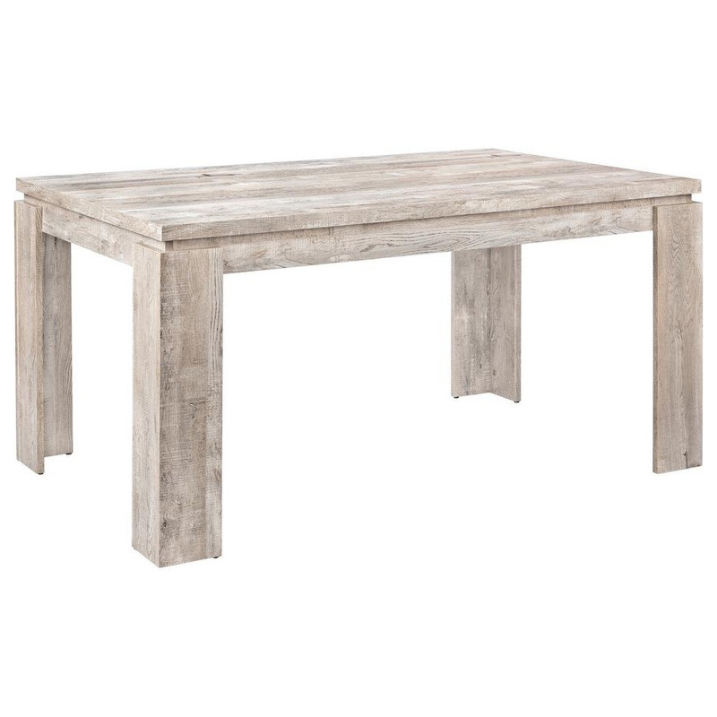 Looking for rustic? Looking for contemporary? How about both? This taupe thick-paneled kitchen table features a unique reclaimed wood look surface to offer the perfect unique style for your new place. The modern dining table also features thick open block