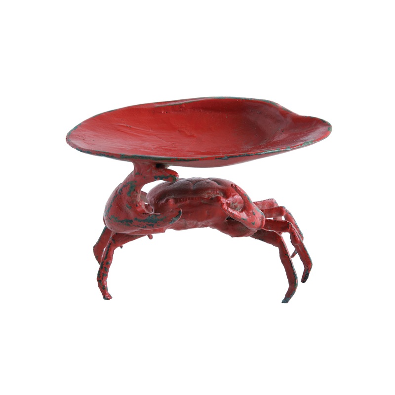 Distressed Red Decorative Cast Iron Crab Shaped Dish – Beach Style – Decorative Plates – by Olive Grove